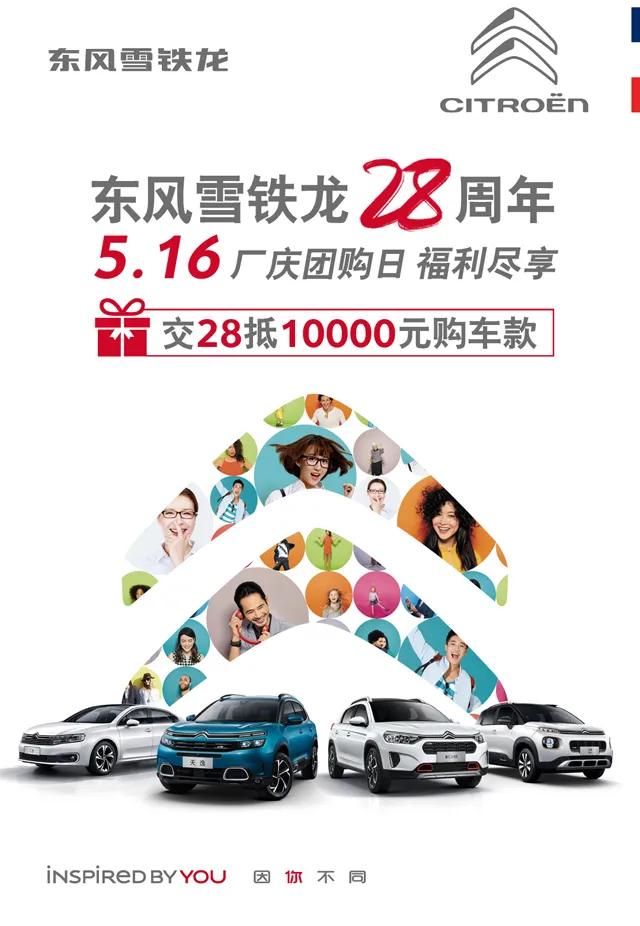 為慶祝東風(fēng)雪鐵龍?jiān)谥袊?guó)傳承28周年,同時(shí)也為了回饋那些在背后默默支持的“小可愛(ài)”們,東風(fēng)雪鐵龍將在2020年5月16日舉行一場(chǎng)全國(guó)聯(lián)動(dòng)的廠慶專場(chǎng)活動(dòng)。